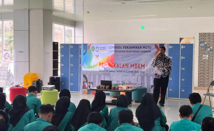 Humas IAIN Parepare — Lembaga Penjaminan Mutu (LPM) IAIN Parepare melalui Pusat Pengembangan Kurikulum dan SDM melaksanakan kegiatan Pembekalan Merdeka Belajar Kampus Merdeka (MBKM) pada Kamis, (28/08/2025). Kegiatan ini dihadiri langsung oleh Rektor IAIN Parepare, Prof. Dr. Hannani, M.Ag., Wakil Rektor I Bidang Akademik dan Kelembagaan, Dr. H. Saepudin, M.Pd serta Ketua LPM, Dr. Muhammad Qadaruddin, M.Sos.I.