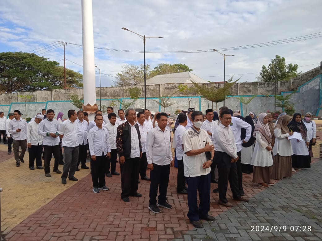Humas IAIN Parepare - Apel pagi Aparatur Sipil Negara (ASN) di lingkungan IAIN Parepare kembali digelar pada Senin (9/9/2024) di lapangan upacara moderasi beragama IAIN Parepare. Wakil Rektor I, Dr. H. Saefudin, M. Pd., bertindak sebagai pembina apel yang dilaksakan tepat pada minggu kedua perkuliahan semester ganjil tahun akademik 2024/2025.