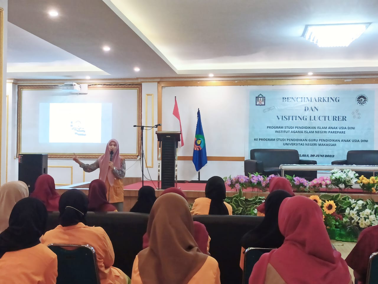 Adapun kegiatan Visiting Lecturer dibawakan oleh salah satu dosen Prodi PIAUD IAIN Parepare, Tri Ayu Lestari Natsir. Ia menyampaikan kuliah umum yang berjudul "Komunikasi Efektif Guru/Orangtua dengan Anak Usia Dini". Kegiatan ini yang bertempat di Convention Hall FIP UNM Makassar ini dipenuhi oleh mahasiswa semester empat Prodi PGPAUD UNM sebagai peserta kegiatan. Dalam kegiatan ini, Tri Ayu Lestari Natsir menyampaikan materi terkait pentingnya menjalin komunikasi efektif terhadap anak usia dini di era digital kepada mahasiswa Prodi PGPAUD FIP UNM Makassar. Tri Ayu Lestari Natsir sendiri adalah alumni S1-S2 dari Prodi PGPAUD (S1) dan Prodi PAUD (S2) di Universitas Negeri Makassar.