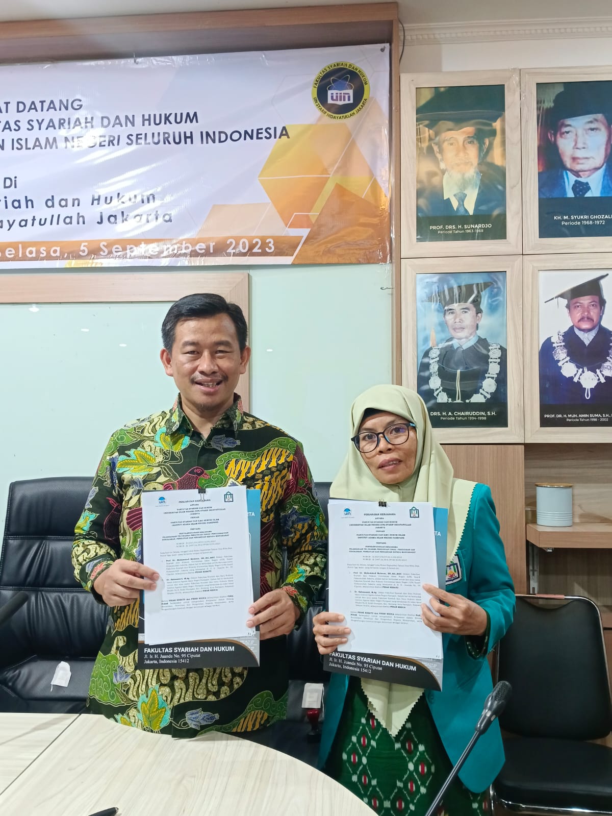 Setelah audiensi dengan Kejaksaan Agung RI, rombongan Forum Dekan bergeser ke Fakultas Syariah dan ilmu Hukum UIN Syarif Hidayatullah Jakarta dengan agenda sharing session terkait akreditasi program studi dan jurnal hukum yang terindeks scopus. Di akhir sesi, dilakukan penandatangan PKS dengan FSH UIN Syarif Hidayatullah dan PTKIN lain seperti UIN Raden Intan lampung, IAIN Bone, dan IAIN Gorontalo.