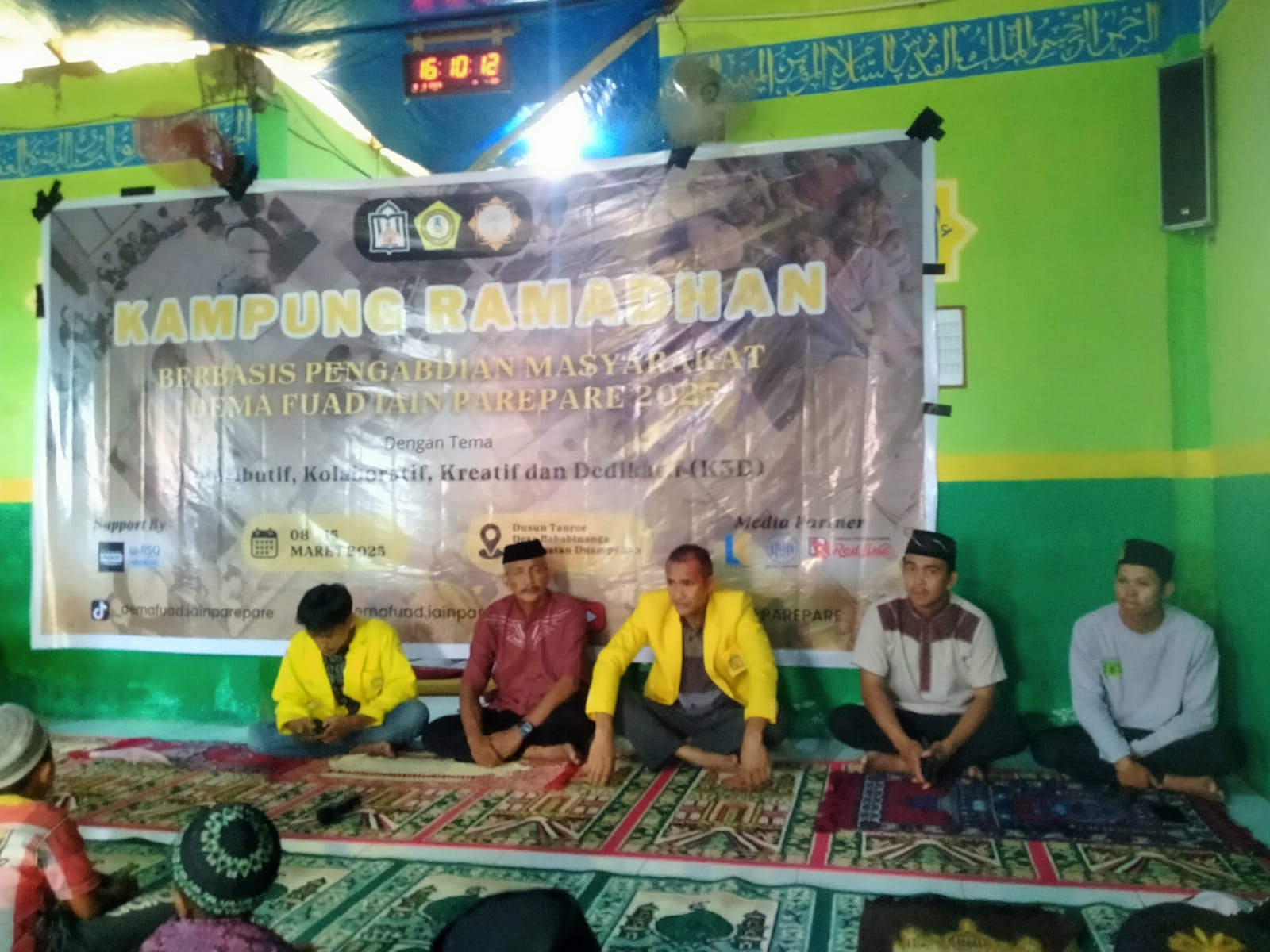 Humas IAIN Parepare - Dewan Eksekutif Mahasiswa (DEMA) Fakultas Ushuluddin, Adab, dan Dakwah (FUAD) menggelar kegiatan Kampung Ramadan berbasis pengabdian masyarakat di Dusun Tanroe, Desa Bababinanga, Kecamatan Duampanua, Kabupaten Pinrang. Kegiatan yang akan berlangsung selama sepekan (8-15/3/2025) ini bertujuan untuk mengimplementasikan Tridharma Perguruan Tinggi serta memberikan manfaat langsung kepada masyarakat setempat.