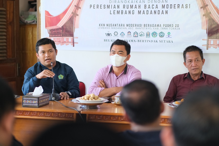 Humas IAIN Parepare--- Di Lembang Madadan kecamatan Rantetayo kabupaten Tana Toraja, tim monitoring KKN Nusantara bersama pihak Dinas Perpustakaan setempat menjadi saksi peresmian Rumah Baca Moderasi. Rumah baca ini diinisiasi oleh mahasiswa KKN Nusantara posko 20.