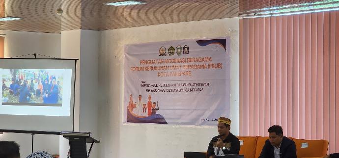 Humas IAIN Parepare — Direktur Pascasarjana IAIN Parepare menjadi narasumber dalam kegiatan moderasi beragama dengan tema "Membangun Hubungan Ukhuwah Wathoniyah, Persaudaraan Sesama Warga Negara" yang diadakan oleh Forum Kerukunan Umat Beragama (FKUB) Kota Parepare. Acara ini berlangsung di lantai 5 perpustakaan, Ahad (9-6-2024).