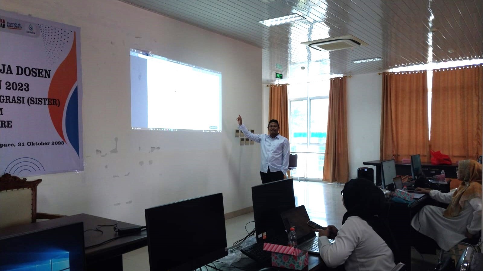 Humas IAIN Parepare - Pada Selasa (31/10/2023), sejumlah dosen dan pimpinan Fakultas Ekonomi dan Bisnis Islam (FEBI) di IAIN Parepare mengikuti Sosialisasi Pelaporan Beban Kinerja Dosen melalui Sistem Informasi Sumberdaya Terintegrasi (SISTER). Acara tersebut berlangsung di Gedung Perpustakaan Lt. 4 IAIN Parepare dan difasilitasi oleh Lembaga Penjaminan Mutu (LPM). Sosialisasi ini dihadiri oleh Ketua Pusat Audit, Adnan Achiruddin Saleh serta perwakilan TIPD, Ahmad Zuhudy.