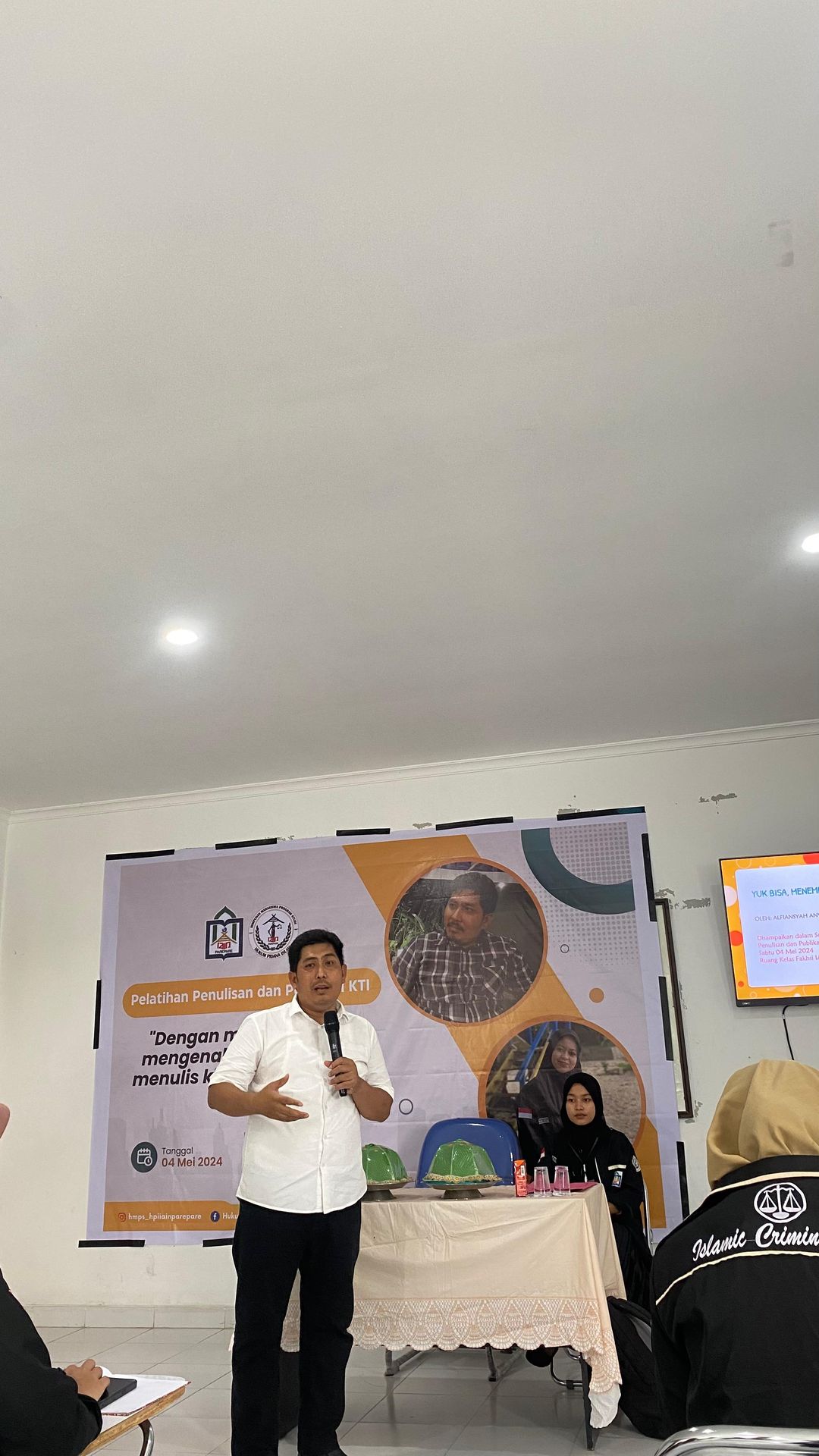 Humas IAIN Parepare -- Himpunan Mahasiswa Program Studi (HMPS) Hukum Pidana Islam (HPI) Fakultas Syariah dan Ilmu Hukum Islam (Fakshi) Institut Agama Islam Negeri (IAIN) Parepare menggelar Pelatihan Penulisan dan Publikasi Karya Tulis Ilmiah (P3KTI) di Ruang Kelas 101 Fakshi, IAIN Parepare, Sabtu (4/5/2024).