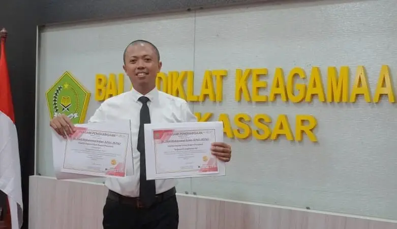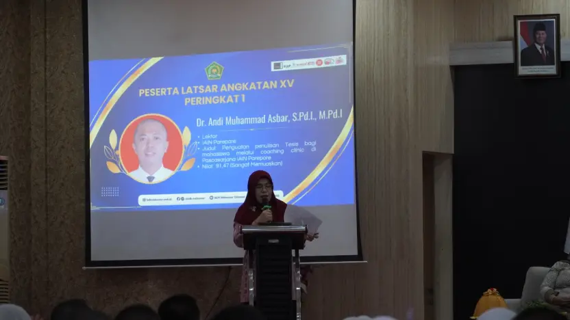 Humas IAIN Parepare---Di balik layar perkuliahan dan aktivitas akademik di kampus IAIN Parepare, ada sosok muda yang menebar inspirasi. Dalam ajang Pelatihan Dasar (Latsar) CPNS Kementerian Agama Republik Indonesia tahun 2025, yang diselenggarakan oleh Balai Diklat Keagamaan (BDK) Makassar, nama Dr. Andi Muhammad Asbar, S.Pd.I., M.Pd.I Dosen Pascasarjana IAIN Parepare bersinar. Ia bukan hanya dinobatkan sebagai Peserta Terbaik Pertama dengan predikat Sangat Memuaskan (nilai 91,47), tetapi juga berhasil menyabet gelar Peserta Terfavorit setelah melalui evaluasi dari 40 peserta di Angkatan XV.
