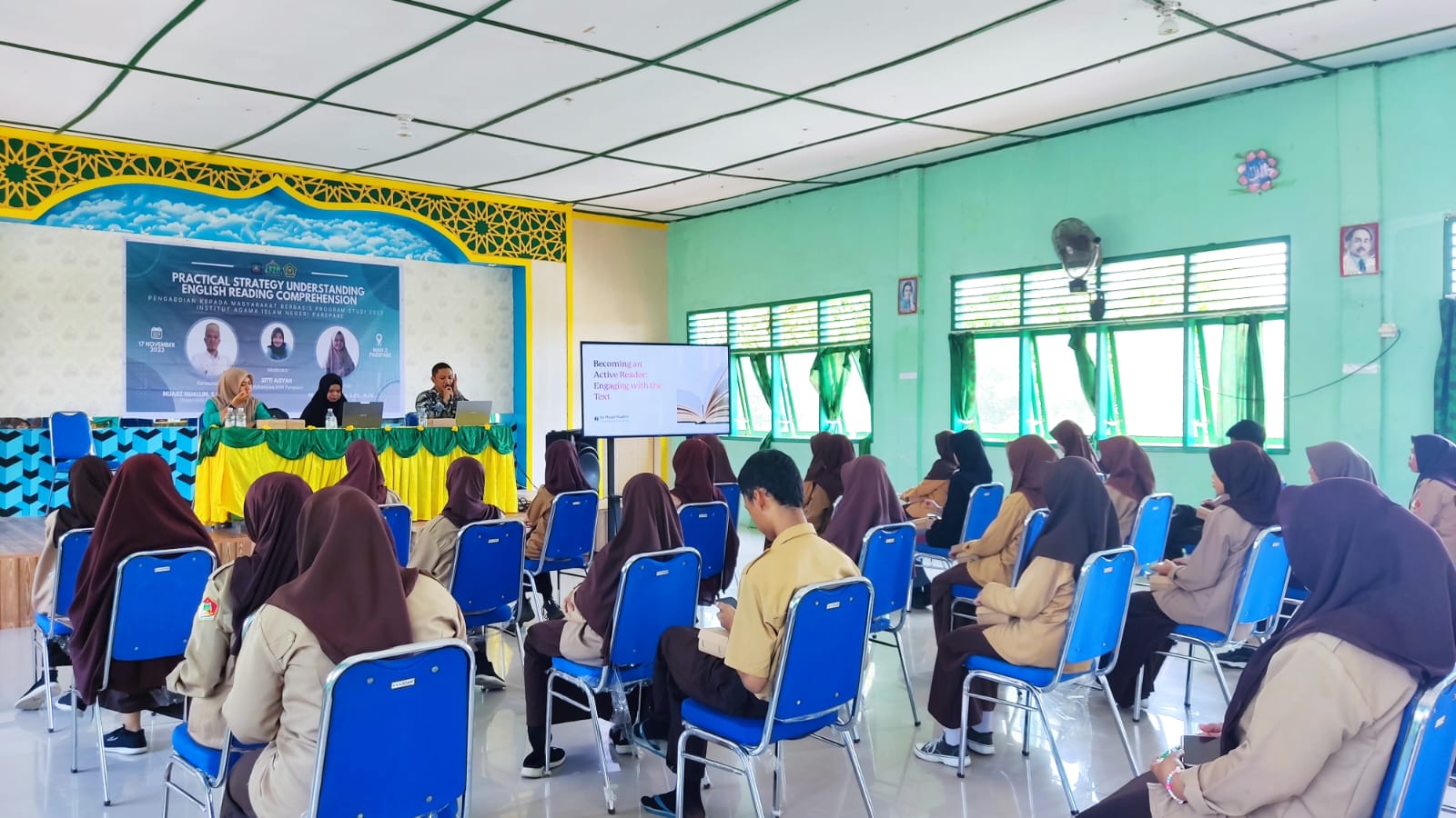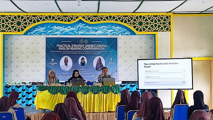 Humas IAIN Parepare - Dua dosen Prodi Pendidikan Bahasa Inggris (PBI) menggelar Pengabdian kepada Masyarakat (PkM) dengan topik "Practical Strategy Understanding English Reading Comprehension" di Madrasah Aliyah Negeri (MAN) 2 Parepare, Jumat (17/11/2023). Kegiatan ini merupakan realisasi dari program hibah PkM Lembaga Penelitian dan Pengabdian Masyarakat (LP2M) IAIN Parepare.
