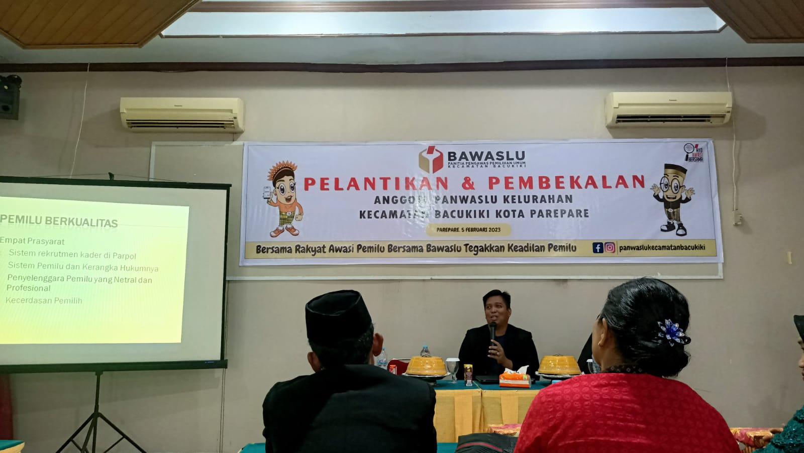 Humas IAIN Parepare -- Menghadapi perhelatan demokrasi pada Pemilu 2024, Badan Pengawas Pemilu Kota Parepare melalui Panitia Pengawas Pemilu (Panwaslu) Kecamatan se-Kota Parepare melaksanakan pelantikan dan pembekalan Panwaslu Kelurahan/Desa (PKD), Kecamatan Bacukiki dan Bacukiki Barat.