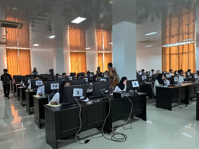 Para peserta hadir tepat waktu dan mengikuti ujian dengan tertib. Tim teknis dan panitia terus memastikan semua fasilitas, termasuk perangkat komputer dan jaringan internet, berjalan optimal demi kenyamanan peserta.