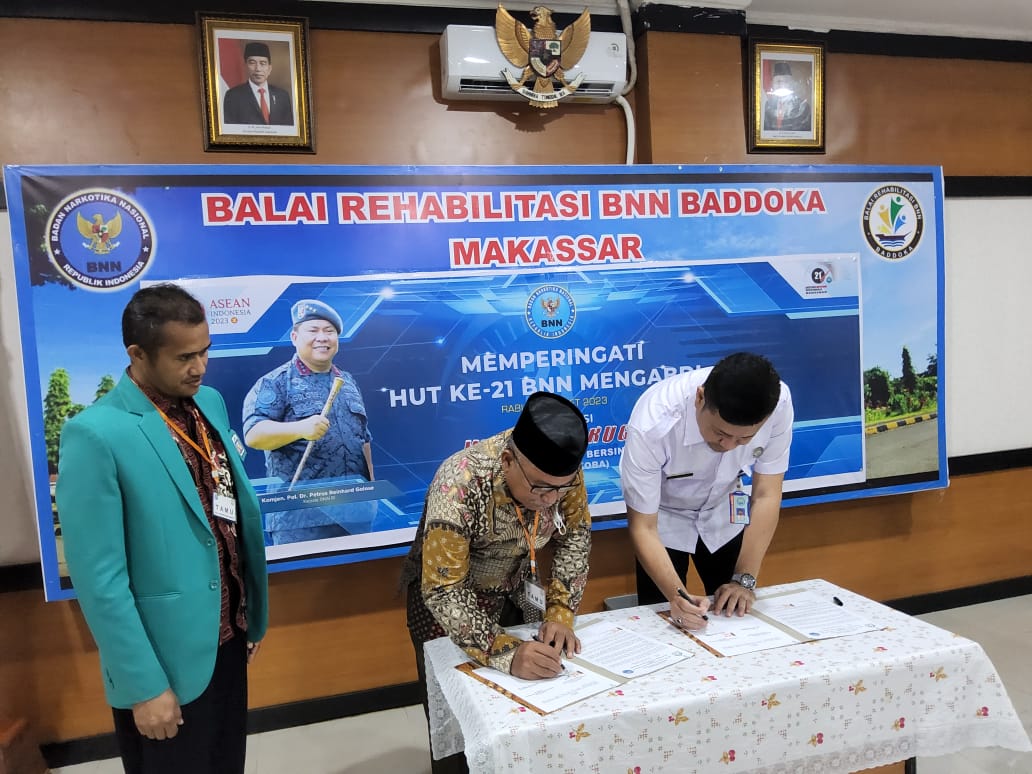 Humas IAIN Parepare- Institut Agama Islam Negeri Parepare melakukan Penandatanganan Memorandum of Understanding (MoU) dengan Balai Rahabilitasi Badan Narkotika Nasional (BNN) Baddoka Makassar, Rabu (05/04/2023) di Kantor Balai Rehabilitasi BNN Makassar.