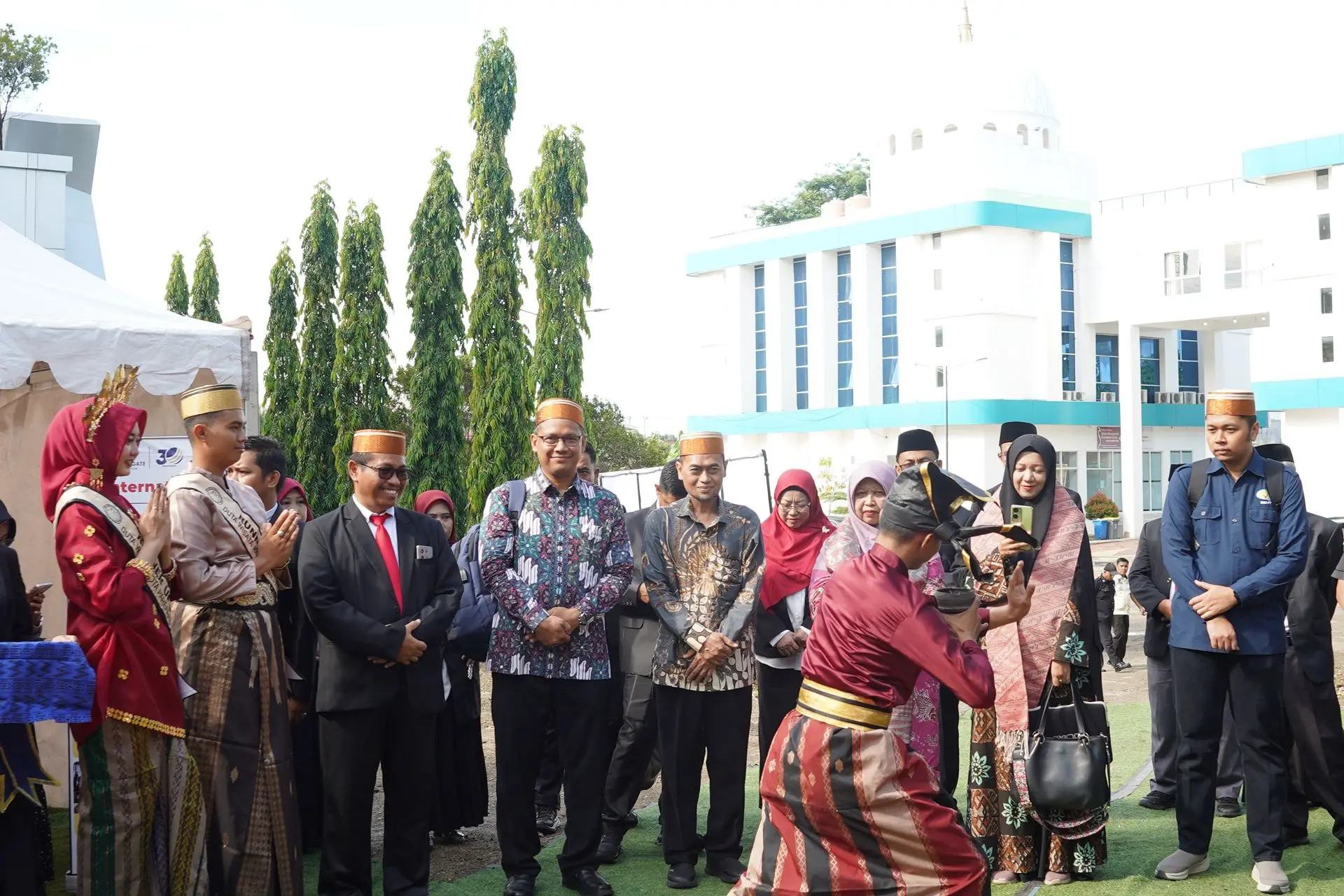 Suasana penyambutan Tim Asesor berlangsung sangat meriah dan kental nuansa budaya. Kedatangan para Asesor disambut hangat oleh Rektor beserta seluruh jajaran pimpinan. Acara diawali dengan prosesi simbolis di mana Duta Kampus dari perwakilan mahasiswa IAIN Parepare mengalungkan dan memasangkan Songkok Recca Khas Sulawesi.
