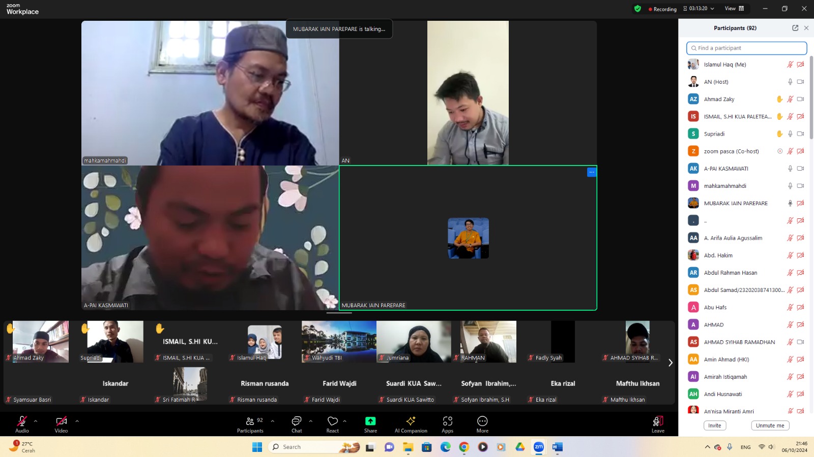 Humas IAIN Parepare -- Program Pascasarjana IAIN Parepare kembali menggelar acara International Guest Lecturer Series 2, dengan tema "Membangun Harmoni dalam Keberagaman: Etika Interaksi Muslim dengan Non-Muslim di Era Global." kegiatan di lakukan Minggu 06/10/2024 Via Zoom Meeting,