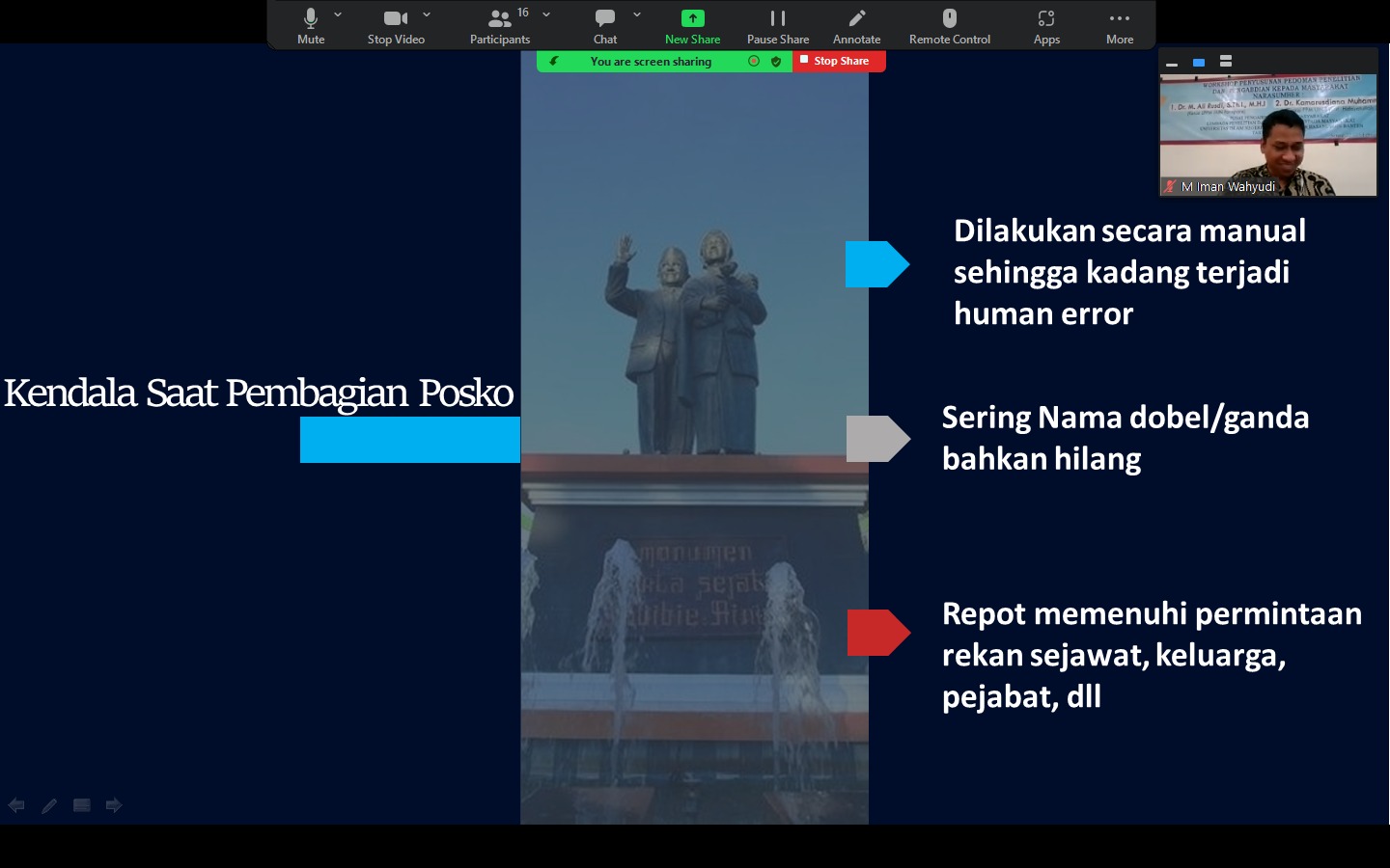 “Selanjutnya terdapat kendala dalam pembagian posko karena dilakukan secara manual, sehingga kadang terjadi human error. Sering, ada nama ganda, bahkan hilang. Repot memenuhi permintaan rekan sejawat, keluarga, dan pejabat” tuturnya.