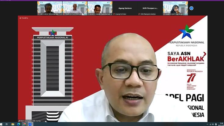 “Kami mengucapkan terima kasih kepada Kepala Biro, Hukum, Organisasi, Kerja Sama dan Humas Perpusnas RI dan jajarannya yang sudah meluangkan waktunya bersama kami pada rapat teknis yang digelar oleh UPT Perpustakaan IAIN. Rapat ini sebagai tindak lanjut dari kunjungan kami ke kantor Biro HOKH Perpusnas beberapa waktu yang lalu,” ujar Hannani membuka rapat via zoom yang terlaksana pukul 14.00 WITA.