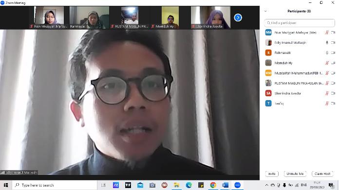 Humas IAIN Parepare – Dalam rangka pelaksanaan penandatanganan kerja sama internasional antara IAIN Parepare dengan Masyarakat Ekonomi Syariah (MES) Cabang Turki, Program Studi Hukum Ekonomi Syariah (Muamalah) melakukan penjajakan dan rapat koordinasi dengan sejumlah pengurus dan anggota MES, Senin (20/03/2023) secara daring melalui zoom meeting.