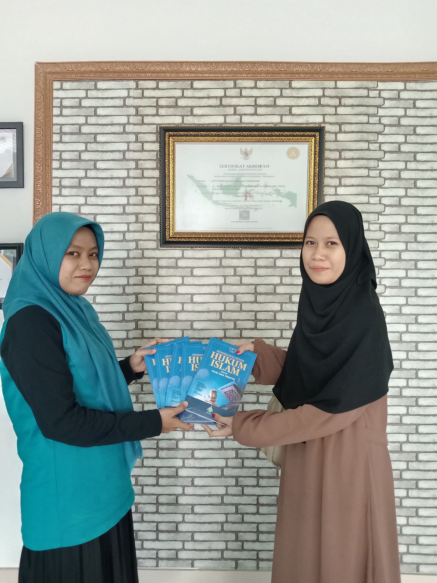 Serah terima buku dari Kapus publikasi dan penerbitan LP2M ke penulis dan buku tersebut diserahkan langsung oleh perwakilan mahasiswa HKI kepada pihak Perpustakaan IAIN Parepare di Gedung Perpustakaan Lantai 1, pada Jumat, 14 Juni 2024.