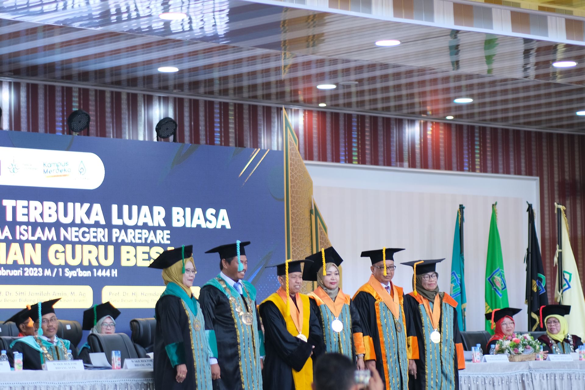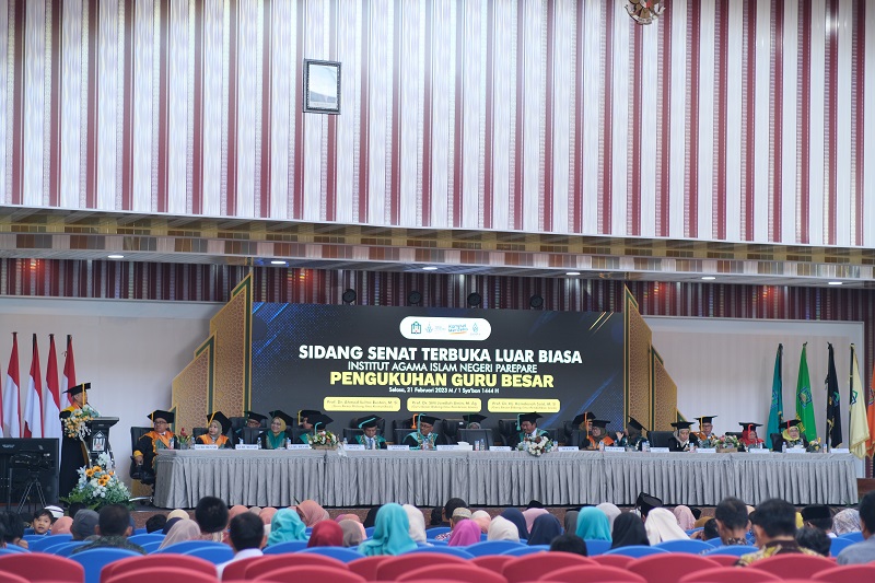 Humas IAIN Parepare -- Sekretaris Jenderal Kementerian Agama Republik Indonesia, Prof. Dr. H. Nizar Ali, M.Ag mengukuhkan tiga Guru Besar IAIN Parepare, Selasa (21/2/2023) di Gedung Auditorium IAIN Parepare.