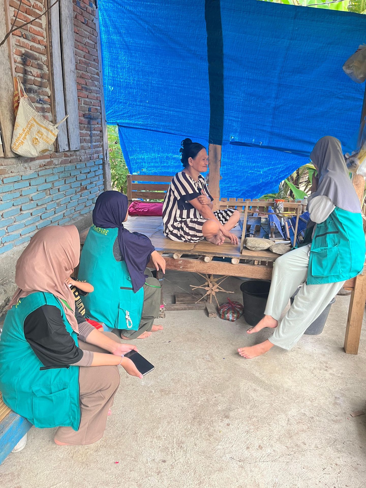 Kegiatan ini bertujuan untuk mengobservasi proses pembuatan sarung tenun Mandar, dikenal dengan nama lipaq sabbe Mandar, serta memahami cara pemasaran yang dilakukan oleh pengrajin lokal. Sarung tenun ini dibuat dengan menggunakan alat tradisional dan teknik penenunan yang telah diwariskan secara turun-temurun. Para pengrajin memulai proses dengan pengolahan benang, yang dikenal dengan istilah manetteq, sebelum melanjutkan ke proses penenunan yang lebih kompleks.