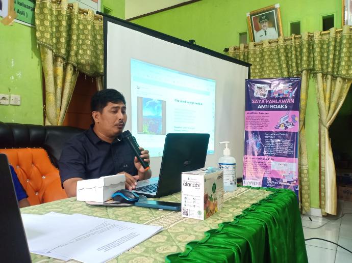 Ketua Panitia Kampung Literasi Sari Hidayati menuturkan bahwa informasi palsu sangat mudah mempengaruhi masyarakat, karena kecanggihan teknologi saat ini membuat konten asli dan palsu sangat sulit dibedakan.