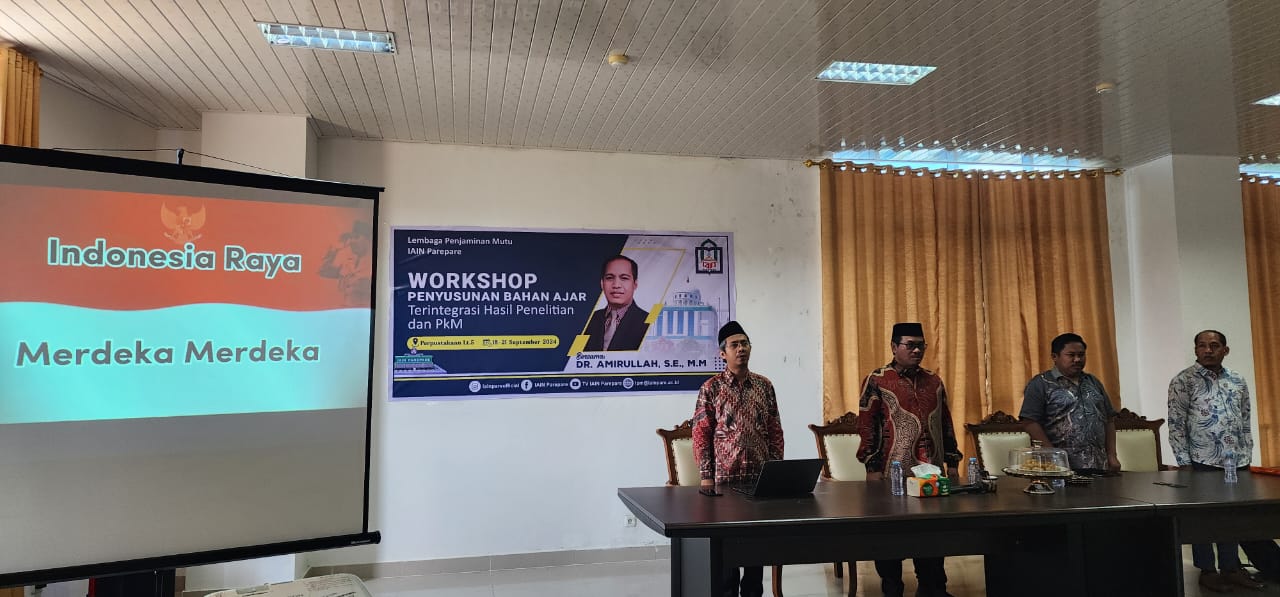 Humas IAIN Parepare_IAIN Parepare melalui Lembaga Penjaminan Mutu (LPM) dan Lembaga Penelitian dan Pengabdian kepada Masyarakat (LP2M) menyelenggarakan Workshop Penyusunan Bahan Ajar Terintegrasi Hasil Penelitian dan Pengabdian kepada Masyarakat (PkM). Kegiatan ini berlangsung pada 18-21 September 2024 di Perpustakaan IAIN Parepare, diikuti oleh dosen lintas fakultas dengan tujuan memperkuat kualitas pembelajaran dan memenuhi kebutuhan akreditasi.