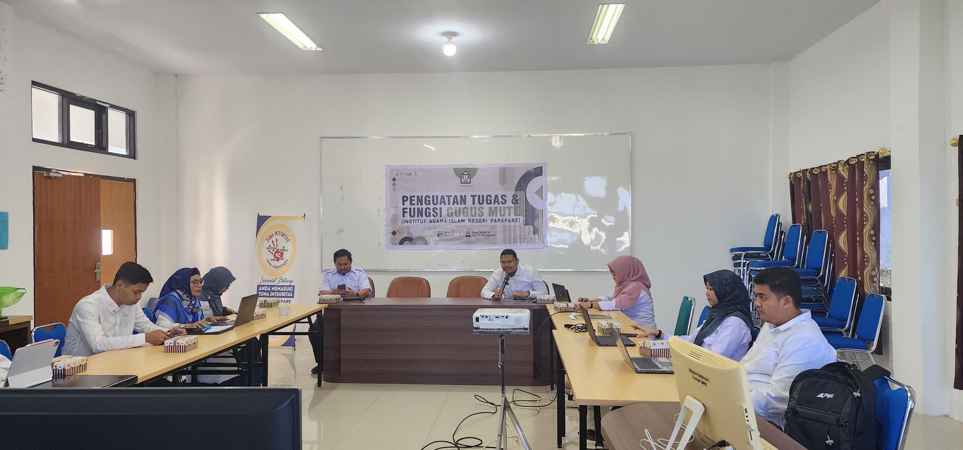 Humas IAIN Parepare_Lembaga Penjaminan Mutu (LPM) IAIN Parepare di bawah Pusat Audit dan Pengendalian Mutu mengadakan kegiatan bertajuk Penguatan Tugas dan Fungsi Gugus Mutu, Senin-Selasa (06-07/04/2024) di Ruang Akreditasi LPM. Hadir dalam kegiatan ini, Ketua LPM Muhammad Qadaruddin, Sekertaris LPM H. Islamulhaq, Kepala Pusat Pengembangan Standar dan Akreditasi Sulvinajayanti.