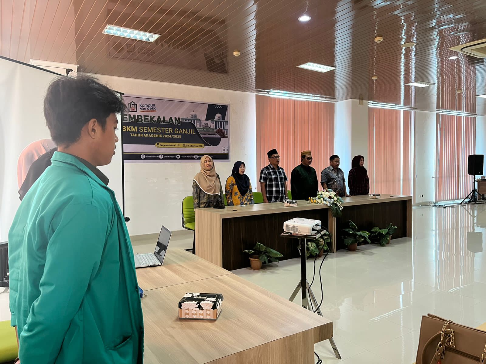 Humas IAIN Parepare_ Pusat Pengembangan Kurikulum dan SDM pada Lembaga Penjaminan Mutu (LPM) Institut Agama Islam Negeri (IAIN) Parepare menyelenggarakan acara pembekalan dan pelepasan bagi 95 mahasiswa yang akan mengikuti program Merdeka Belajar Kampus Merdeka (MBKM), Juma’t (30/08/2024) di Gedung Perpustakaan Lantai 5 IAIN Parepare.