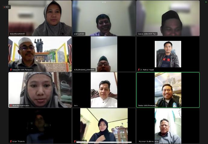 Humas IAIN Parepare -- Lembaga Penjaminan Mutu (LPM) IAIN Parepare menggelar Sosialisasi dan Bimbingan Teknis (Bimtek) Penyusunan Program dan Kegiatan Berbasis Mutu, Jumat (6/3/2023) melalui zoom meeting.
