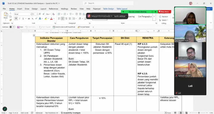Humas IAIN Parepare,– Dalam rangka memperkuat implementasi Sistem Penjaminan Mutu Internal (SPMI) di lingkungan kampus, Lembaga Penjaminan Mutu (LPM) dibawah koordinasi Pusat Pengembangan Standar dan Akreditasi bersama Fakultas Tarbiyah IAIN Parepare menggelar kegiatan koordinasi penyusunan SPMI melalui Zoom Meeting, Rabu (07/08/2025).