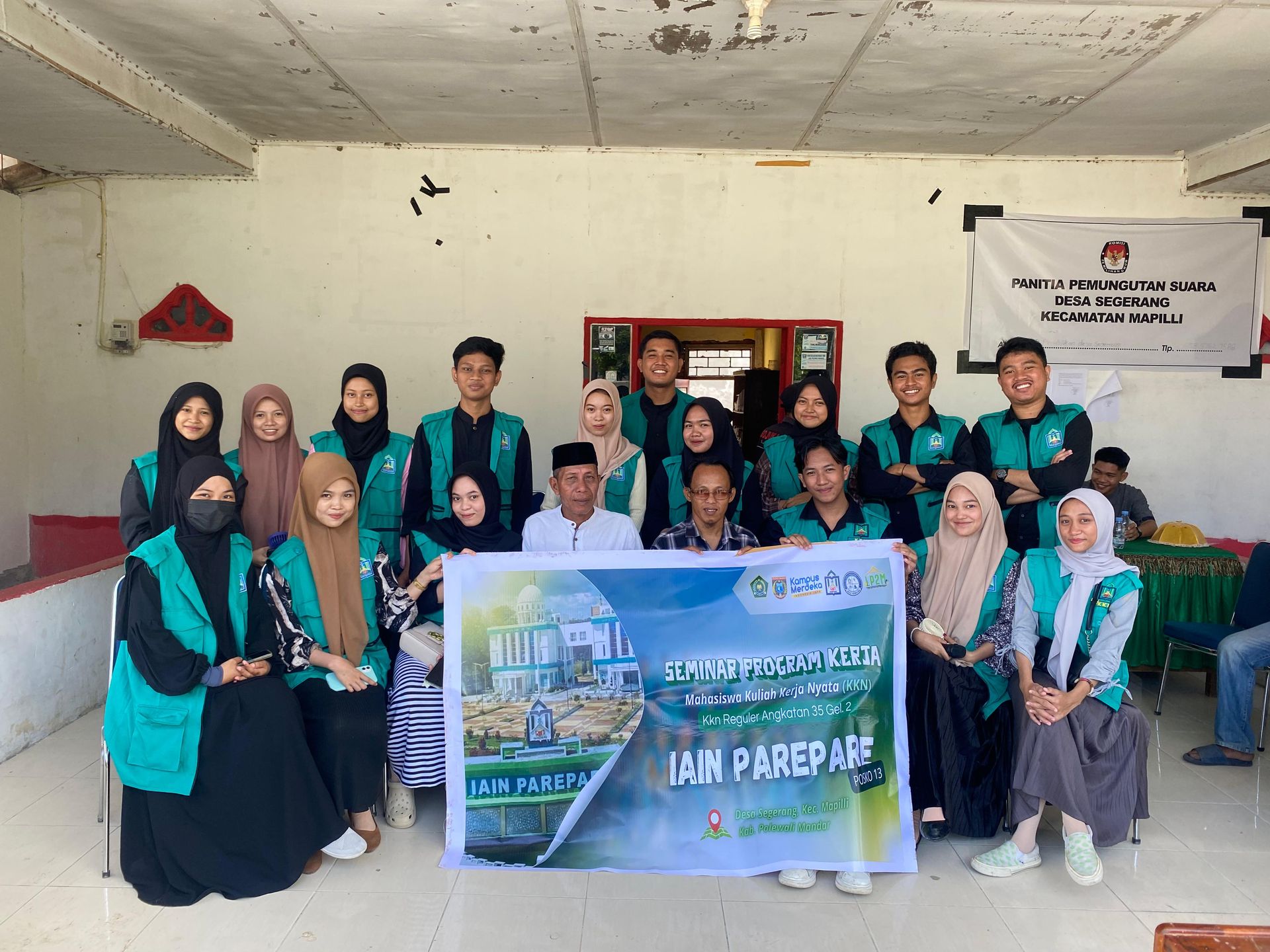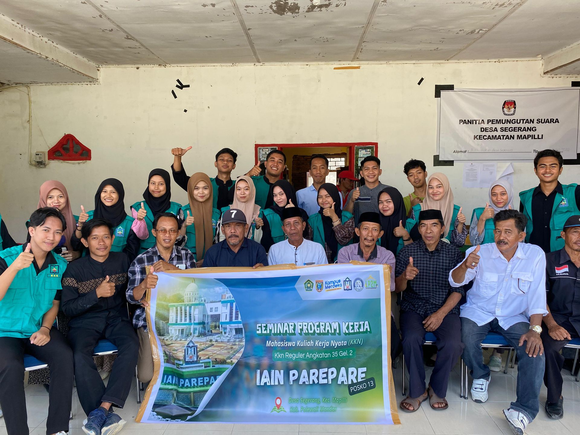 Humas IAIN Parepare---Pada Jumat, 18 Juli 2024, Mahasiswa IAIN Parepare Posko 13 menggelar seminar program kerja di Balai Desa Segerang, Kecamatan Mapilli, Kabupaten Polewali Mandar. Kegiatan ini dimulai pukul 08.30 WITA dan bertujuan untuk memperkenalkan serta mendiskusikan program kerja yang telah mereka rancang, sebelum pelaksanaannya di lapangan.