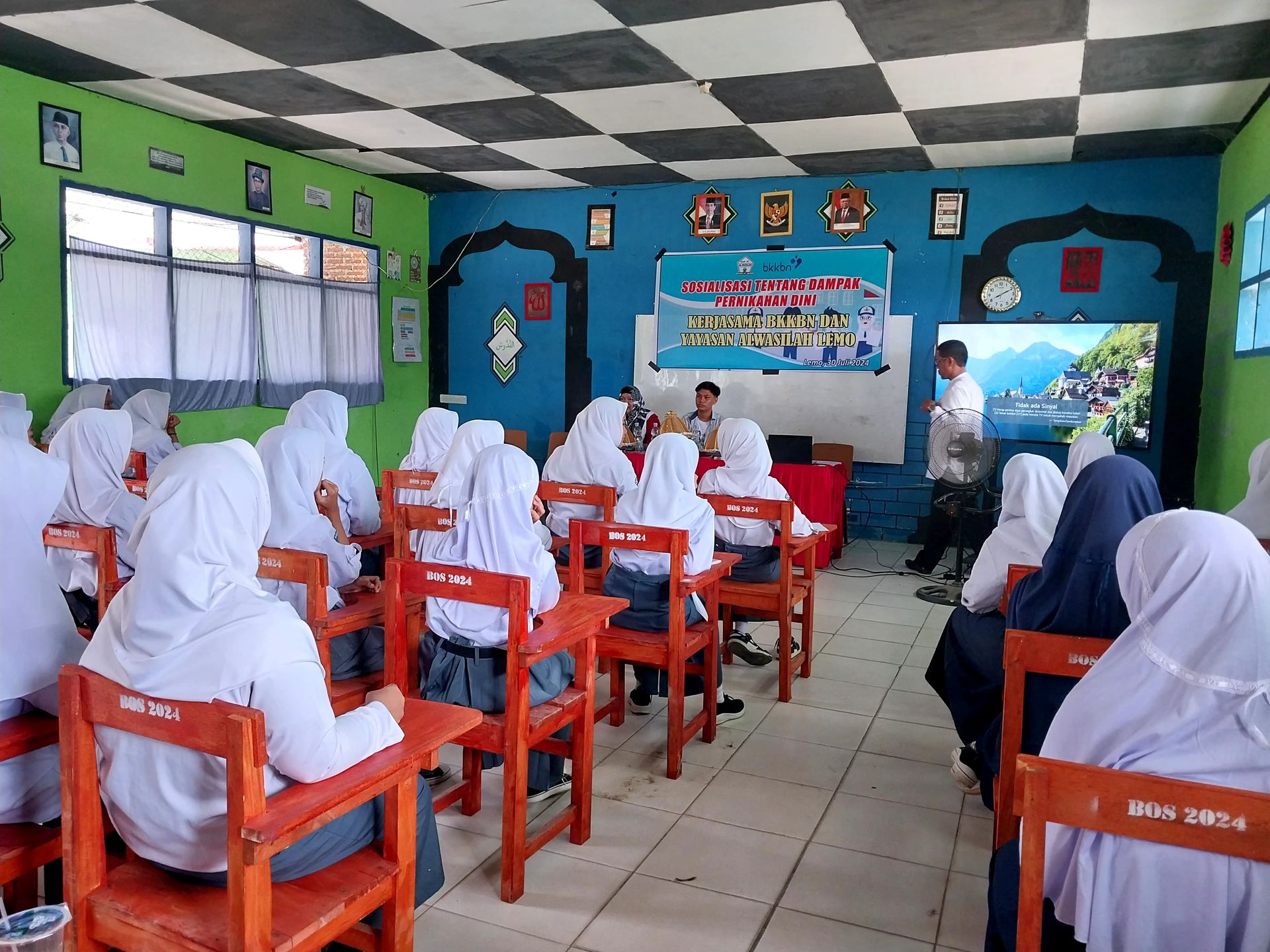 Sosialisasi ini dihadiri oleh 100 peserta yang terdiri dari siswa-siswi MTS dan MA Al-Wasilah Lemo. Kegiatan dimulai dengan persiapan dan penyediaan tempat oleh Mahasiswa KKN, yang kemudian diikuti oleh presentasi dari BKKBN. Narasumber memaparkan berbagai aspek mengenai pernikahan dini, termasuk definisi, kematangan usia dalam pernikahan, masalah yang dihadapi setelah pernikahan dini, serta faktor-faktor penyebab dan dampak pernikahan dini terhadap pria dan wanita.