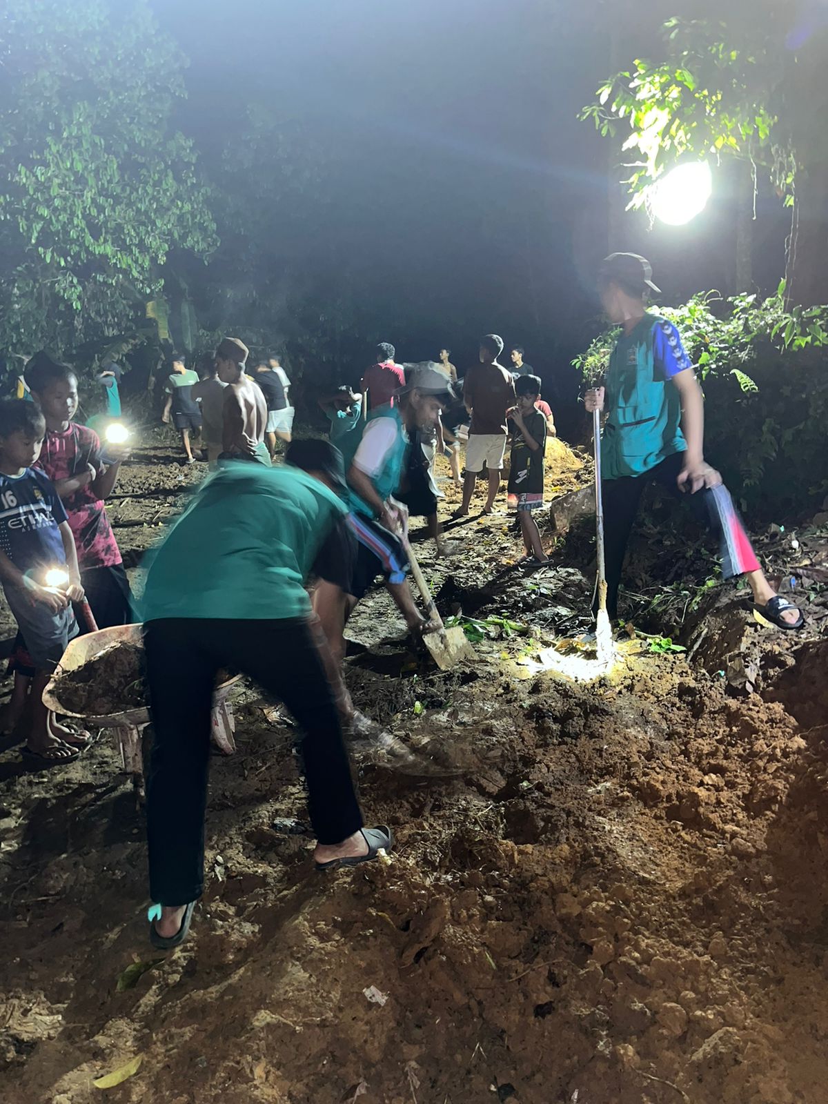 Sebanyak 16 anggota Posko 4 dan 30 warga setempat bahu-membahu dalam membangun lapangan voli. Semangat dan kerja sama mereka terlihat jelas dalam setiap pekerjaan membangun lapangan voli.