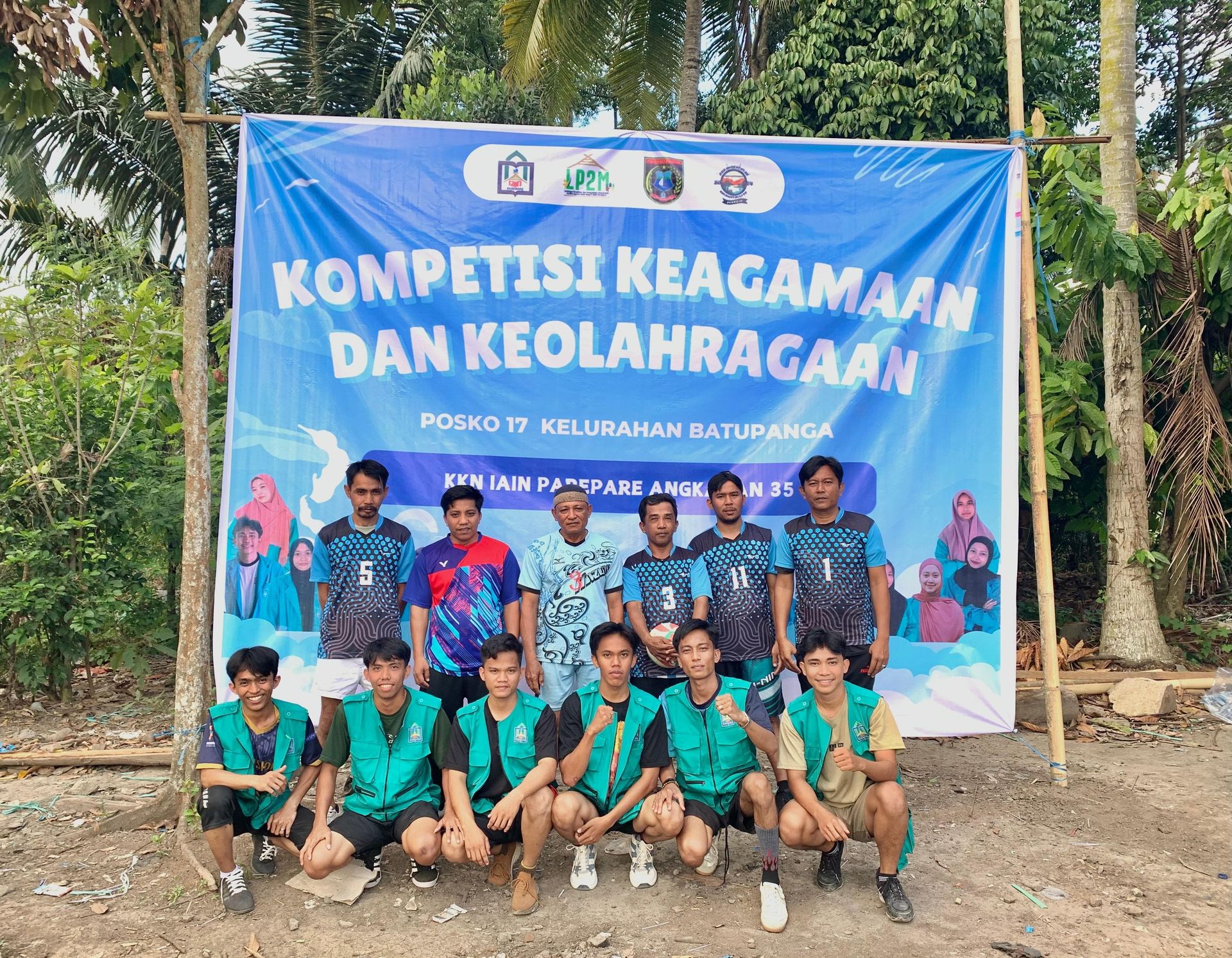 Humas IAIN Parepare---Menyambut HUT RI ke-79, Mahasiswa Kuliah Kerja Nyata (KKN) IAIN Parepare Posko 17 menggelar turnamen bola voli di Lapangan Bola Voli Lingkungan Lena, Kelurahan Batupanga (Senin, 29 Juli 2024). Acara pembukaan turnamen ini berlangsung pada pukul 16.00 WITA, dengan dihadiri oleh berbagai pihak termasuk Kepala Lurah Batupanga, jajarannya, serta masyarakat setempat.