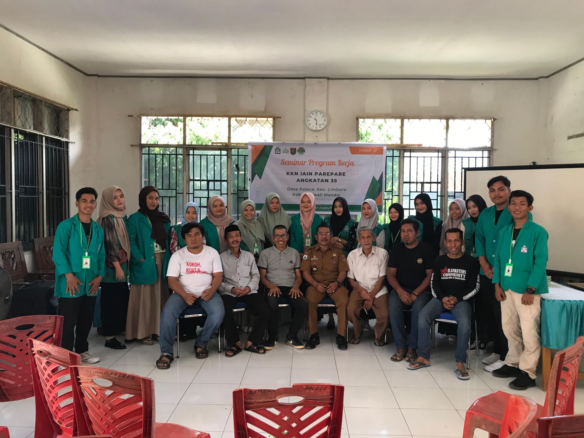 Humas IAIN Parepare---Mahasiswa KKN IAIN Parepare Angkatan 35 dari Posko 49 melangsungkan seminar program kerja di Kantor Desa Palece, Kecamatan Limboro, Kabupaten Polewali Mandar, pada Selasa, 15 Juli 2024. Seminar ini bertujuan untuk memperkenalkan dan mensosialisasikan program-program yang akan dijalankan selama KKN guna meningkatkan kesejahteraan dan solidaritas masyarakat desa.