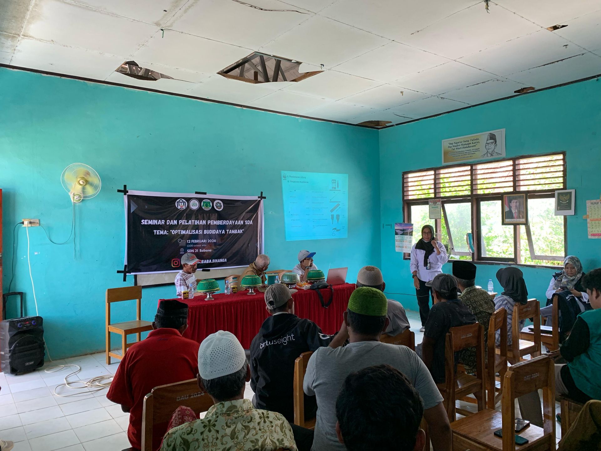 Humas IAIN Parepare- Mahasiswa Kuliah Kerja Nyata (KKN) Mandiri IAIN Parepare menyelenggarakan Seminar dan Pelatihan Pemberdayaan Sumber Daya Alam (SDA) dengan tema “Optimalisasi Budidaya Tambak”. Kegiatan ini berlangsung pada Senin, (12/02/2024) di SDN 31 Babana, Desa Baba Binanga, Kabupaten Pinrang.