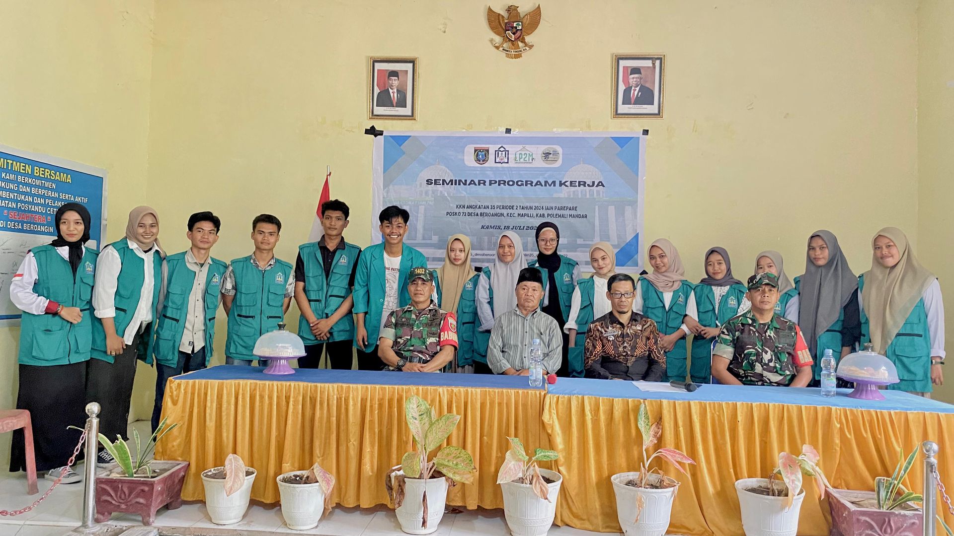 Humas IAIN Parepare---Pada Kamis, 18 Juli 2024, Mahasiswa Kuliah Kerja Nyata (KKN) Angkat 35 Posko 72 dari IAIN Parepare menggelar seminar program kerja di Aula Kantor Desa Beroangin, Kecamatan Mapilli, Kabupaten Polewali Mandar. Kegiatan ini merupakan bagian dari kurikulum perguruan tinggi untuk menerapkan ilmu yang telah dipelajari mahasiswa di kampus ke dalam kehidupan masyarakat.