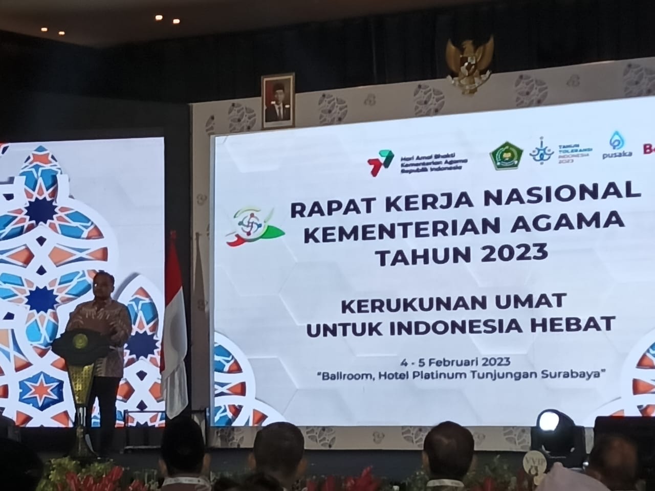 Humas IAIN Parepare -- Kementerian Agama RI menggelar Rapat Kerja Nasional (Rakernas) yang berlangsung selama 2 hari, yaitu 4 - 5 Fabruari 2023. Kegiatan itu dipusatkan di Hotel Platinum Tunjangan, Surabaya, Jawa Timur.