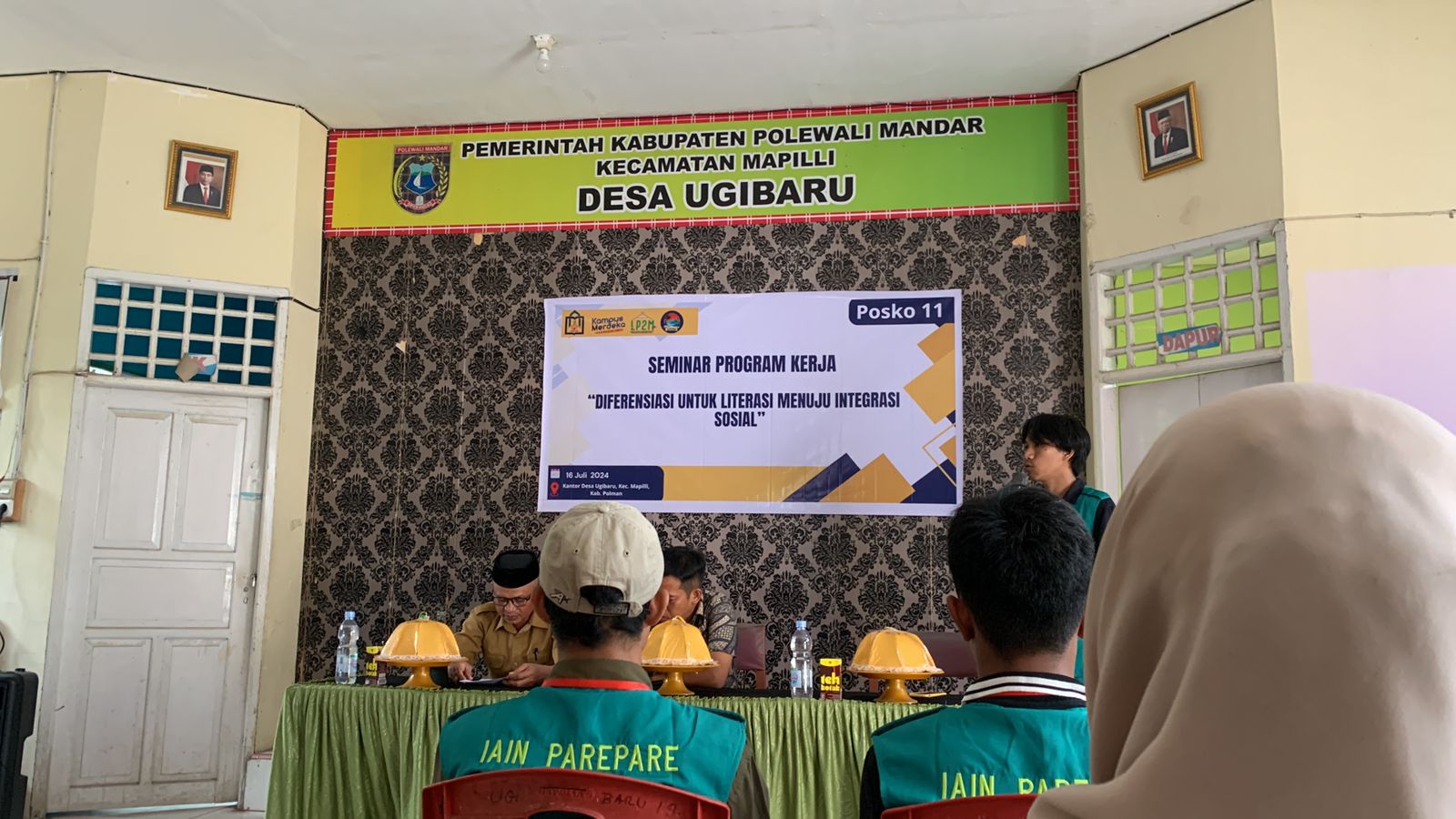 Humas IAIN Parepare---Mahasiswa KKN Reguler IAIN Parepare Posko 11 mengadakan seminar program kerja bertajuk "Diferensiasi untuk Literasi Menuju Integrasi Sosial" pada Selasa, 16 Juli 2024. Seminar ini diadakan di Aula Kantor Desa Ugibaru dengan tujuan untuk membahas dan mensosialisasikan program-program kerja yang akan dilaksanakan selama KKN.
