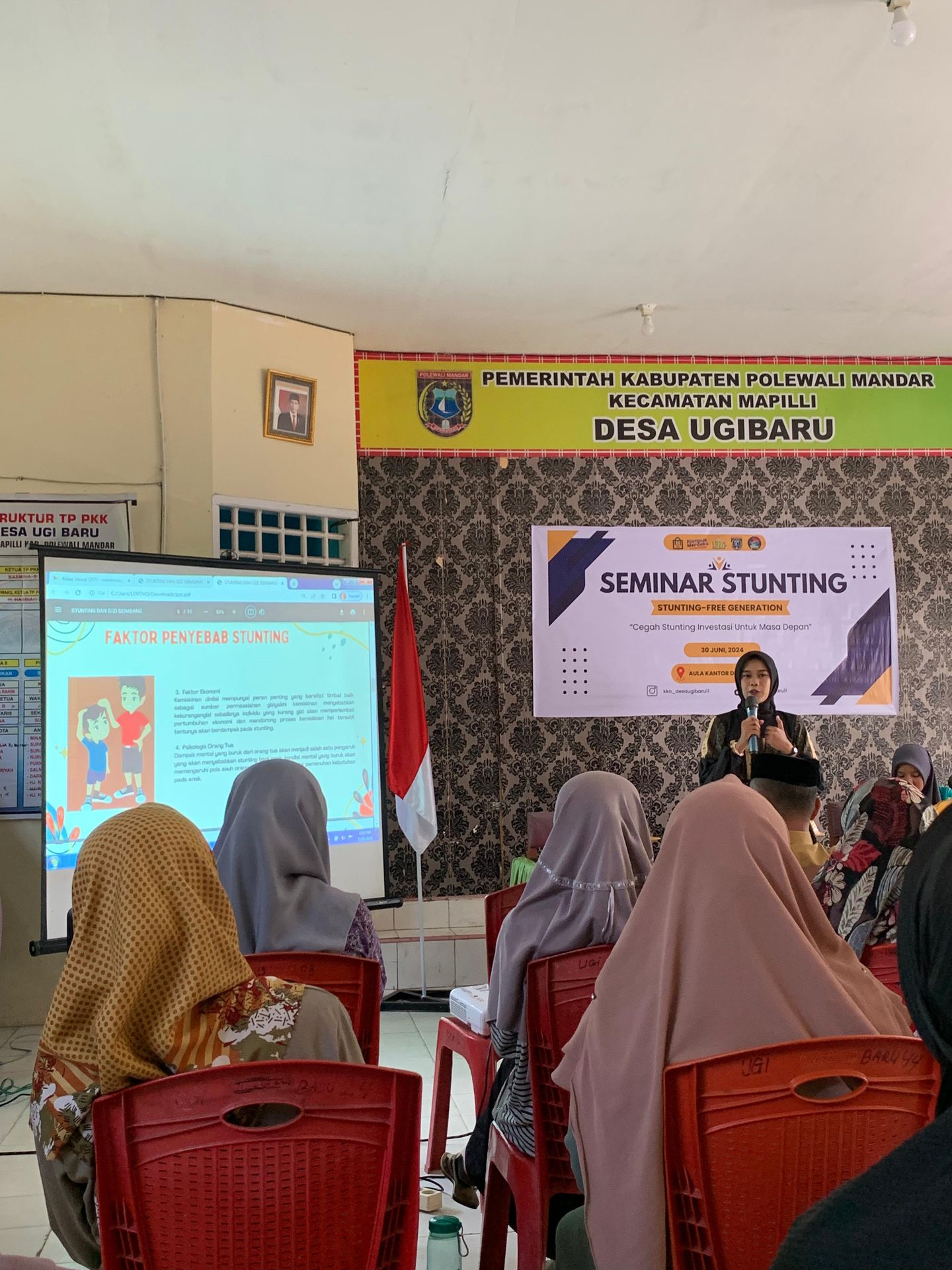Humas IAIN Parepare---Posko 11 Kuliah Kerja Nyata (KKN) IAIN Parepare mengadakan seminar bertema “Cegah Stunting untuk Investasi Masa Depan” pada Selasa, 30 Juli 2024, di Aula Kantor Desa Ugibaru, Kec. Mapilli. Seminar ini merupakan bagian dari upaya untuk meningkatkan kesadaran dan pengetahuan masyarakat mengenai stunting, masalah kesehatan serius yang mempengaruhi pertumbuhan dan perkembangan anak.
