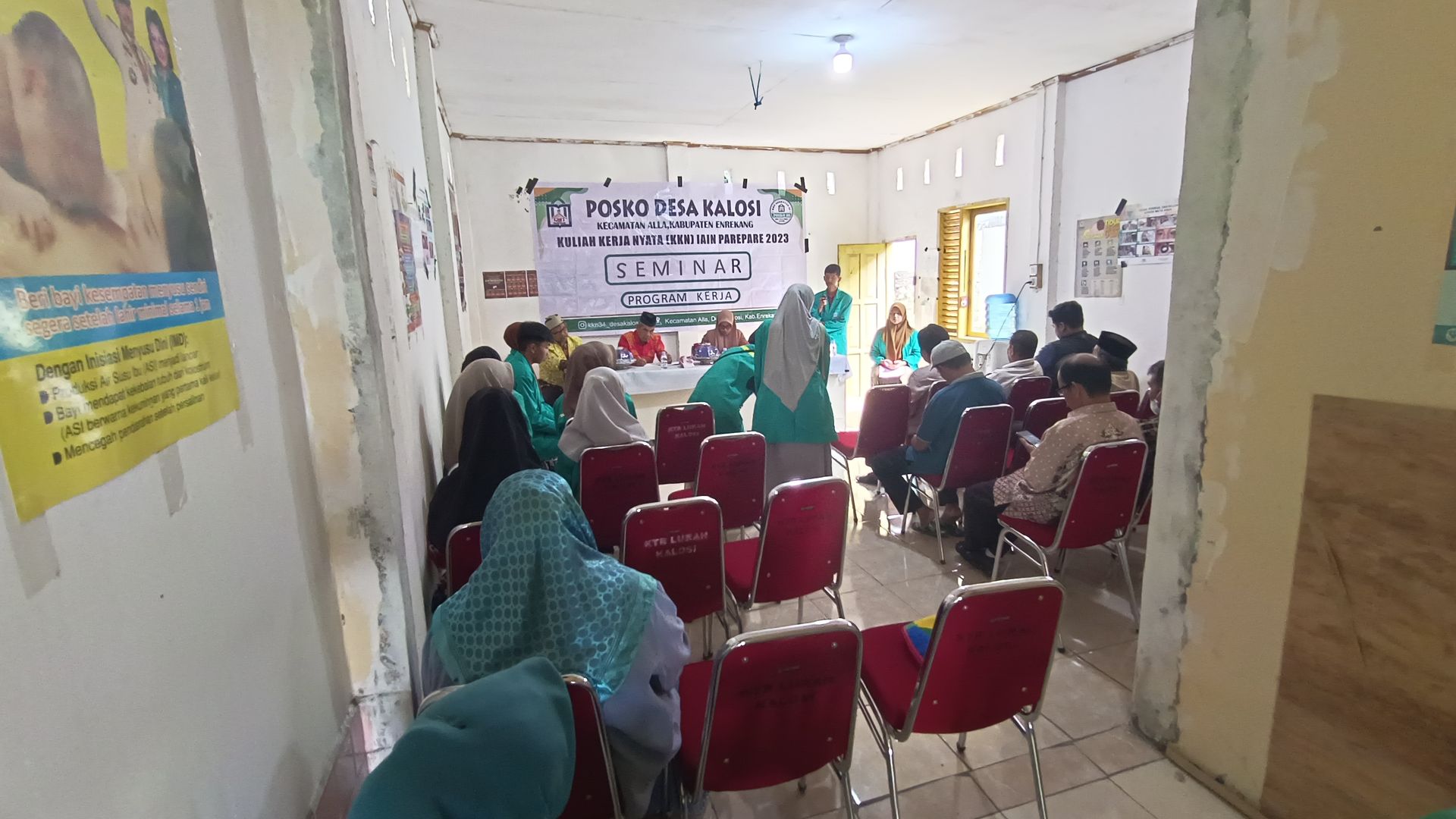 Humas IAIN Parepare- Kuliah Kerja Nyata Posko 80 IAIN Parepare, Kelurahan Kalosi, Kecamatan Alla, Kabupaten Enrekang mengadakan kegiatan seminar program kerja. Kegiatan ini dilaksanakan di Aula Kelurahan kalosi, Jumat (21/07/2023)) yang dibuka oleh Lurah Kalosi Suhiba Baddu.