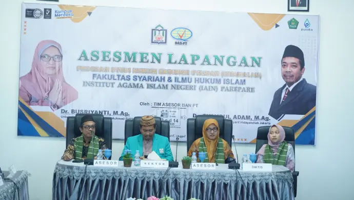Humas IAIN Parepare – Program Studi Hukum Ekonomi Syariah (HES) Institut Agama Islam Negeri (IAIN) Pareare sukses menjalani Asesmen Lapangan (AL) oleh Badan Akreditasi Nasional Perguruan Tinggi (BAN-PT) pada, Jumat (13/6/2025) di Ruang Asesmen Lapangan Lembaga Penjaminan Mutu (LPM) IAIN Parepare . Kegiatan krusial yang berlangsung seharian penuh ini menjadi evaluasi komprehensif untuk mengukur kualitas dan relevansi prodi di kancah nasional.