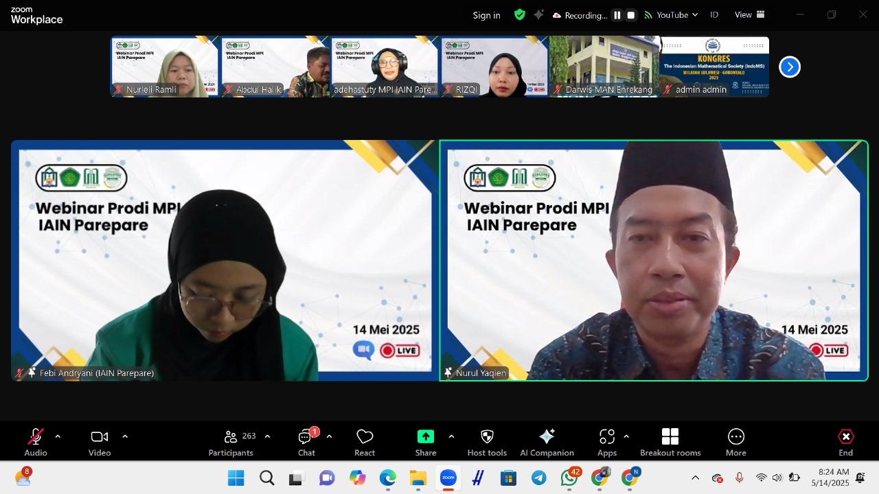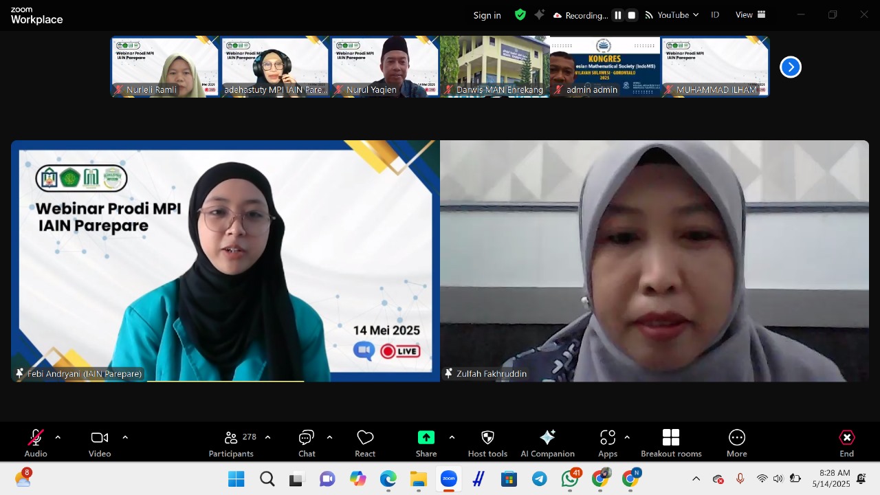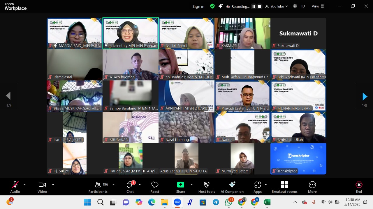 Humas IAIN Parepare – Program Studi Manajemen Pendidikan Islam (MPI) Fakultas Tarbiyah Institut Agama Islam Negeri (IAIN) Parepare sukses menyelenggarakan Webinar Nasional secara daring pada, Rabu (14/05/2025). Acara ini bertajuk "Tantangan Pengelolaan Lembaga Pendidikan Islam dalam Menghadapi Perkembangan AI" ini merupakan wujud nyata kolaborasi antara Prodi MPI IAIN Parepare dengan Prodi MPI Universitas Islam Negeri (UIN) Maulana Malik Ibrahim Malang dan UIN Sayyid Ali Rahmatullah Tulungagung.