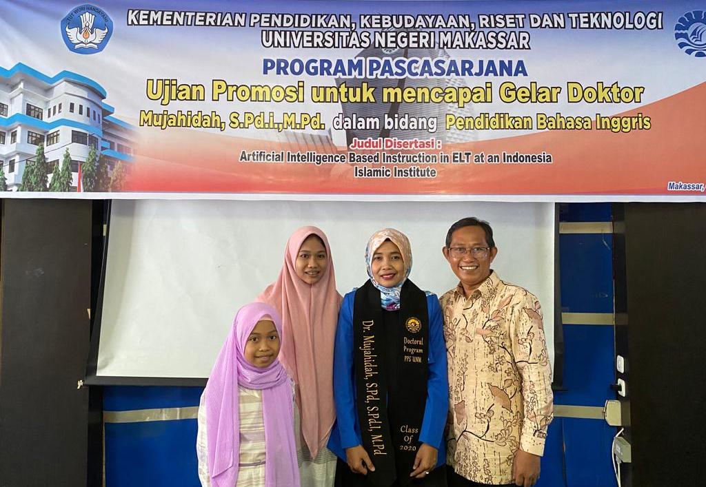 HUMAS IAIN PARE -- Dosen Program Studi (Prodi) Pendidikan Bahasa Inggris (PBI) Institut Agama Islam Negeri (IAIN) Parepare, Mujahidah, berhasil meraih gelar doktor pada bidang pendidikan Bahasa Inggris di Universitas Negeri Makassar (UNM). Capaian tersebut diraih setelah Mujahidah mempertahankan disertasinya di hadapan tim penguji pada Rabu (3/5/2023).