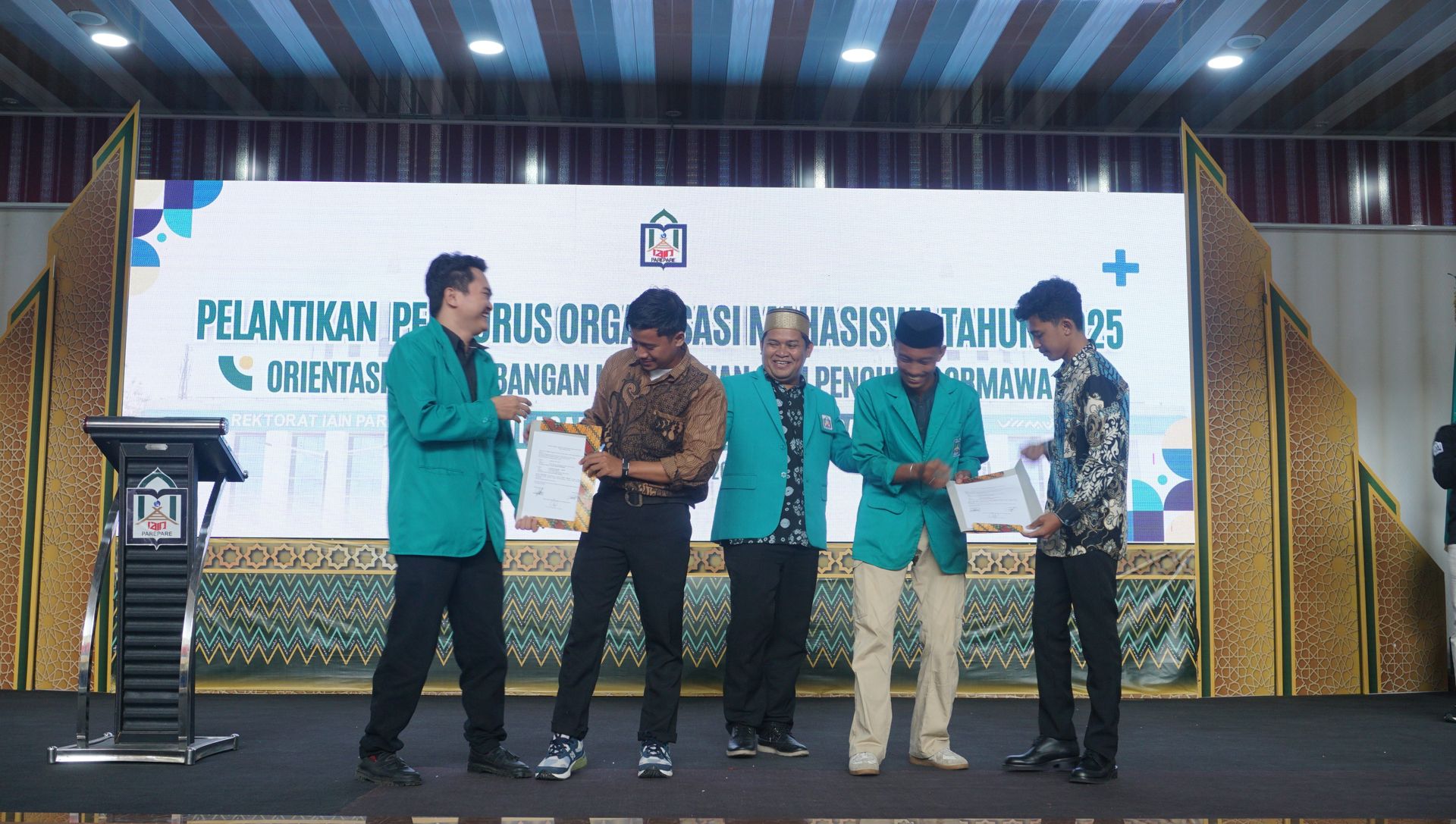 Humas IAIN Parepare – Rektor Institut Agama Islam Negeri (IAIN) Parepare, Prof. Dr. Hannani, M.Ag., secara resmi melantik dan mengambil sumpah Ketua dan Wakil Ketua Dewan Eksekutif Mahasiswa (DEMA) Institut beserta empat fakultas, Senat Mahasiswa (SEMA) Institut dan fakultas, serta para pengurus organisasi mahasiswa (Ormawa) lainnya. Prosesi pelantikan ini berlangsung khidmat di Gedung Auditorium IAIN Parepare, Rabu (6/1/2025).