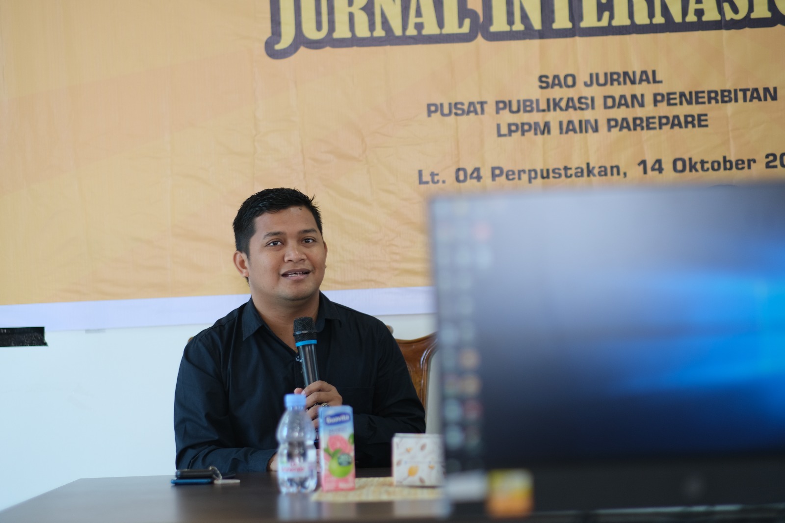 Kegiatan ini menghadirkan pemateri Ahsan Yunus, Ketua Publication Management Unit FH Unhas. Kegiatan ini dihadiri oleh Ketua LP2M, Sekretaris LP2M, Kepala Pusat dalam Lingkup IAIN Parepare, dan peserta.