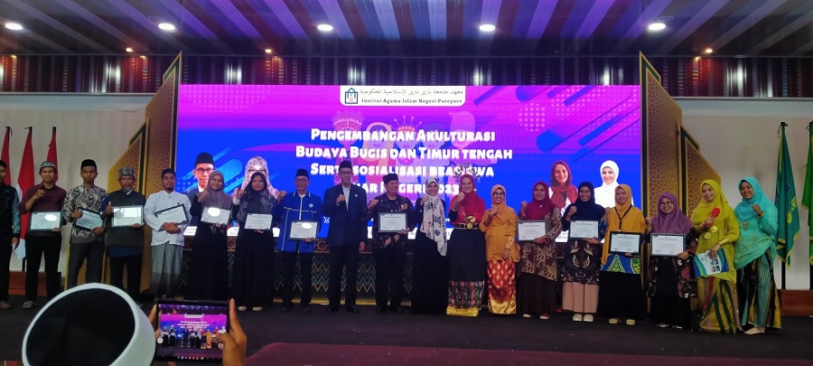 Humas IAIN Parepare--Ma’had Al-Jami’ah Menyelenggarakan Festival Budaya Bugis dan Timur Tengah, Rabu (1/3/2023) di Auditorium IAIN Parepare. Festival Budaya Bugis dihadiri oleh Rektor IAIN Parepare, civitas academica, volunter dari Mesir (Amira Ezzat Mahrous Abdalrahman dan Norhan Farouk Abdelwahab), santri pesantren dan siswa MAN se-ajatappareng. Kegiatan yang diketuai oleh H. Aksa Muhammad Nawawi, Lc., M.Hum. dan sekretaris Rahmawati, S,Pd.I. berlangsung selama 1 hari.