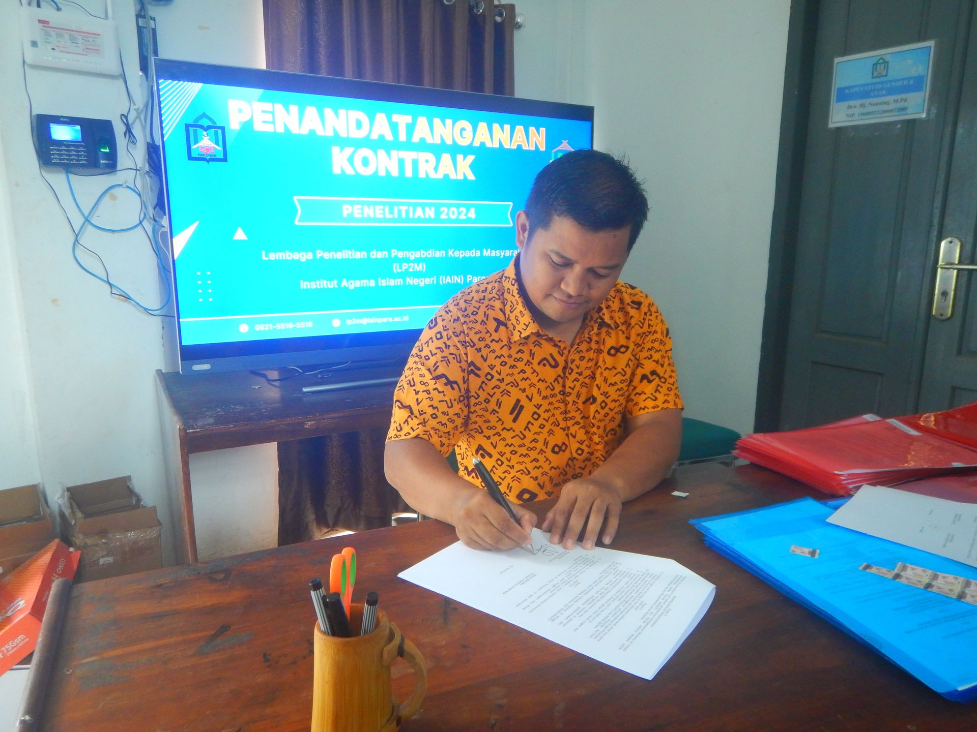 Humas IAIN Parepare- Lembaga Penelitian dan Pengabdian kepada Masyarakat (LP2M) mengundang 80 peneliti Institut Agama Islam Negeri (IAIN) Parepare untuk menandatangani kontrak penelitian pada, Rabu-Jumat (28-01/02-03/2024). Penandatanganan ini menandai dimulainya pelaksanaan penelitian yang didanai oleh Bantuan Penelitian dan Pengabdian kepada Masyarakat (Litapdimas) tahun 2024.