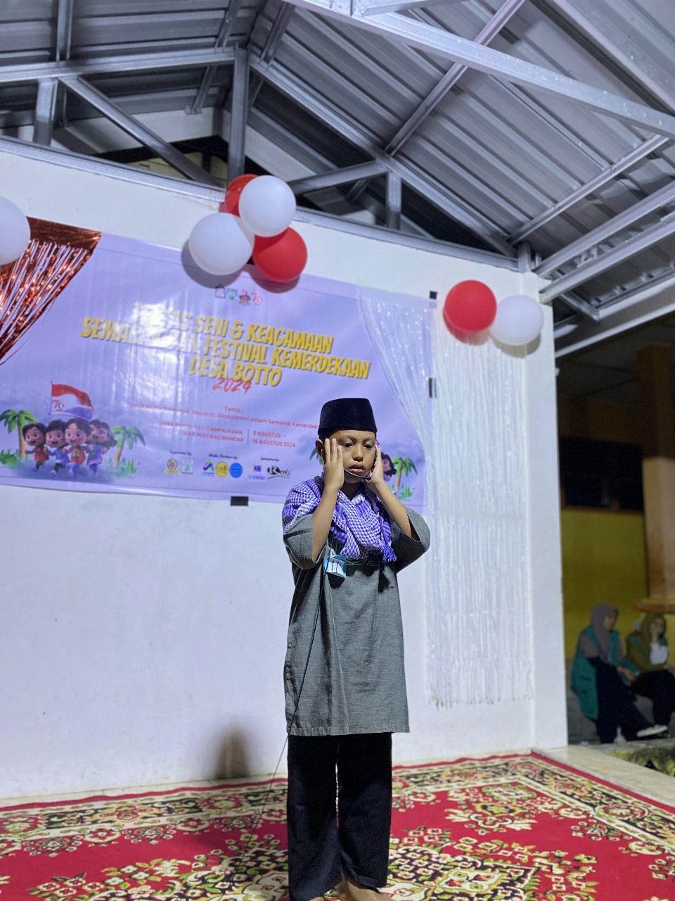 Humas IAIN Parepare---Di dalam memperingati Hari Kemerdekaan Indonesia yang ke-79, Desa Botto, Kecamatan Campalagian, Kabupaten Polewali Mandar, kembali menyelenggarakan "Semarak dan Festival Kemerdekaan Desa Botto 2024." Kegiatan ini tidak hanya menjadi ajang untuk mempererat tali silaturahmi dan menumbuhkan semangat kebersamaan, tetapi juga bertujuan menanamkan nilai-nilai keagamaan kepada generasi muda.