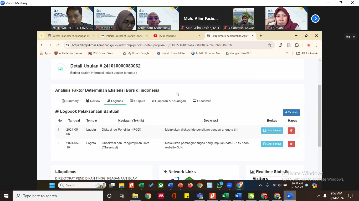 Seminar ini melibatkan 80 judul penelitian yang dibagi ke dalam enam ruangan Zoom. Setiap peneliti diberikan waktu 15 menit untuk mempresentasikan draf laporan lengkap, draf artikel, dan pengisian logbook. Tim penilai yang hadir di setiap ruangan memberikan penilaian berdasarkan progres pengambilan dan pengolahan data, penyusunan laporan, dan draf artikel ilmiah. Sebagian besar tim peneliti telah menyelesaikan pengambilan data dan saat ini sedang dalam tahap penyusunan laporan akhir serta artikel. Beberapa peneliti bahkan sudah berhasil mengirimkan artikel mereka ke jurnal sesuai dengan standar tagihan program.