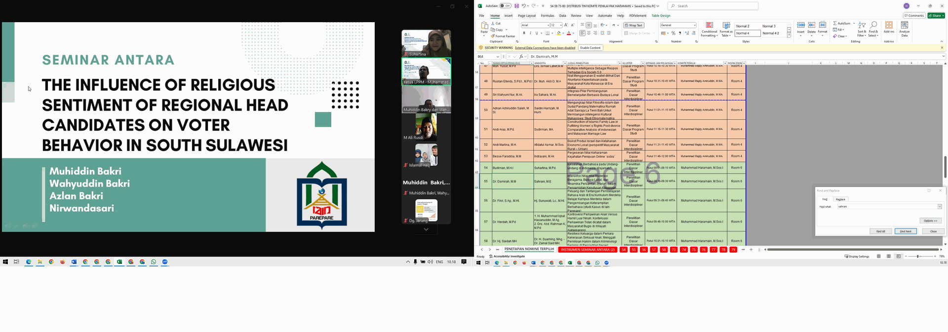 Humas IAIN Parepare- Sabtu (14/09/2024), Pusat Penelitian LP2M IAIN Parepare menggelar Seminar Antara sebagai bagian dari rangkaian Program Bantuan Penelitian berbasis Standar Biaya Keluaran (SBK) Tahun 2024. Kegiatan ini dilaksanakan secara daring melalui platform Zoom, sebagai bentuk penyesuaian terhadap kebutuhan teknologi dan efisiensi penyelenggaraan seminar yang diikuti oleh para peneliti dari berbagai lokasi.