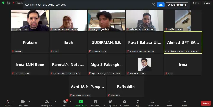 Humas IAIN Parepare—Unit Pengembangan Bahasa (UPB) dan UPT Bahasa dari berbagai perguruan tinggi di Indonesia melaksanakan diskusi secara daring dengan membahas penambahan fitur Computer-Based Test (CBT) TOEFL/TOAFL yang akan diintegrasikan ke sistem informasi akademik (Sisfo). Kegiatan ini digelar melalui Zoom Meeting, pada 2 Juli 2025 dan dihadiri oleh para Kepala UPB/UPT Bahasa se-Indonesia yang bekerja sama dengan pihak Sevima.